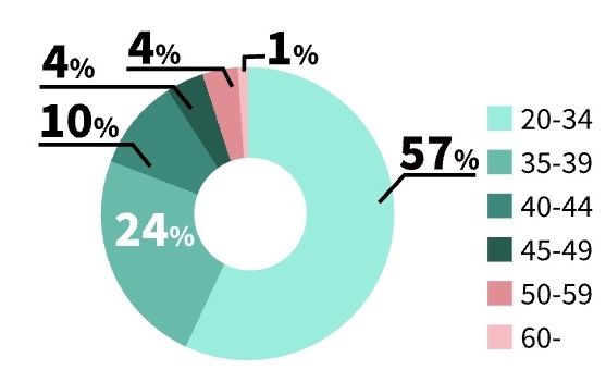 結婚相談所は30〜40代の利用者が多いイメージですが、ツヴァイでは「20代割」があるためか、35歳以下の若い会員が多いようです。