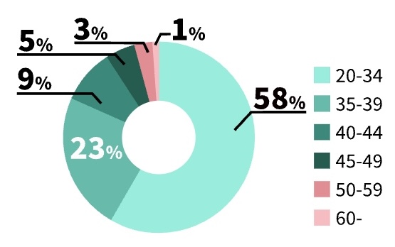 結婚相談所は30〜40代の利用者が多いイメージですが、ツヴァイでは「20代割」があるためか、35歳以下の若い会員が多いようです。