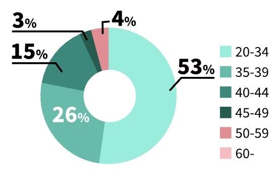 結婚相談所は30〜40代の利用者が多いイメージですが、ツヴァイでは「20代割」があるためか、35歳以下の若い会員が多いようです。