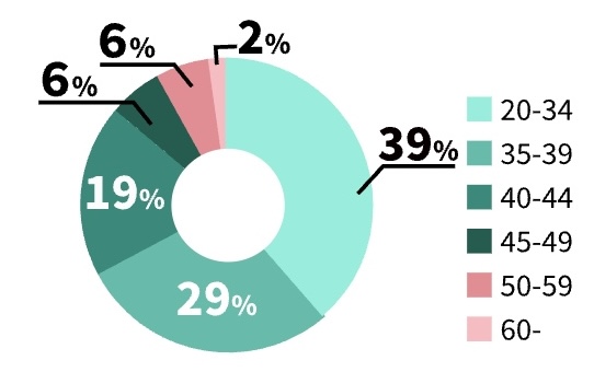 結婚相談所は30〜40代の利用者が多いイメージですが、ツヴァイでは「20代割」があるためか、35歳以下の若い会員が多いようです。
