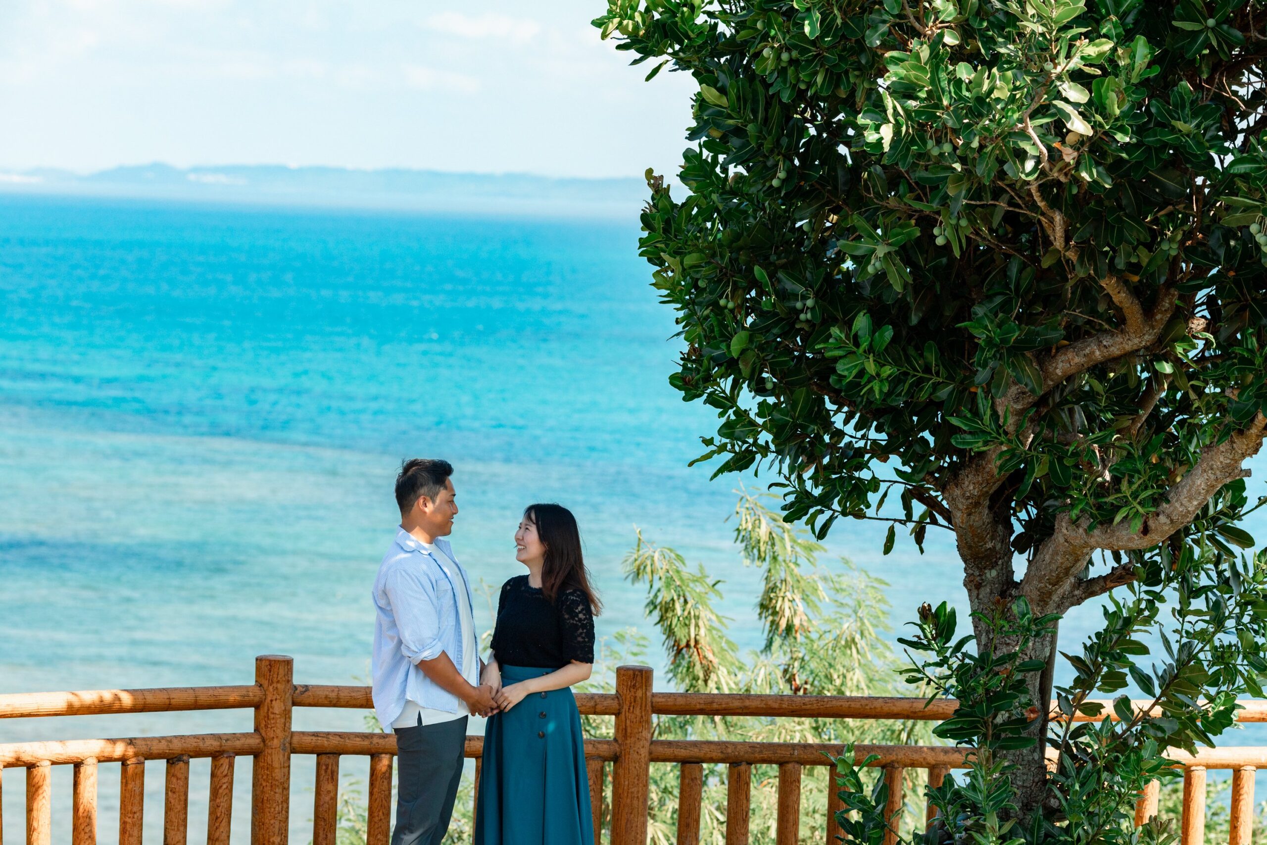Jさん那覇のホテルでディナーをした後、サプライズでプロポーズをしました。最初は鉄板焼きを食べて、その後は隣のバーで少し過ごして…。その後、ホテルの方に案内されて最上階に上がると、夜景が見える場所にロウソクや花束が用意されていたんです。膝をついて指輪の箱をパカッとしながら、「結婚してください」とストレートに伝えました。