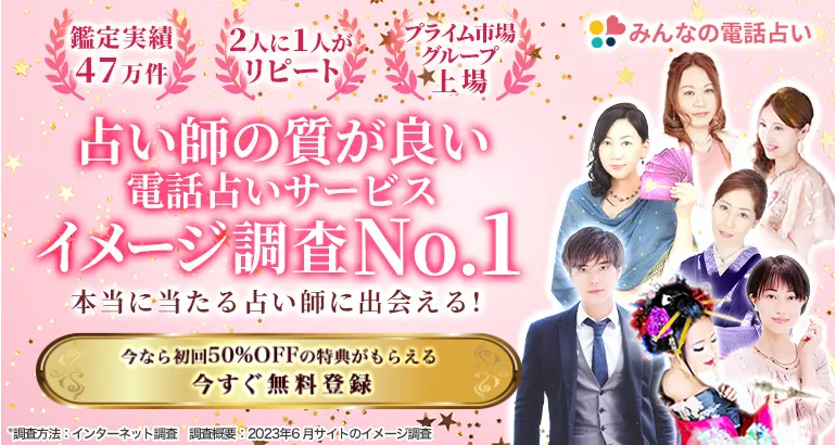 ![]() みんなの電話占い | 50%OFF クーポン | 専用アプリ利用で通話料0円 採用率3.7%の難関を突破した占い師 | 204円 ~ 605円 | アプリで 無料 | 先生に相談・ご祈祷して頂いた後、 遠距離で別れた彼と会う約束が2回できて、 別れて初めてなんと向こうから電話が来ました! 内容も「今何してるの」みたいな感じだったんですけど、 少しずつ遠距離でも距離が縮まっているようで嬉しいです! みんなの電話占い「セラ先生への口コミ・評価」より引用 |