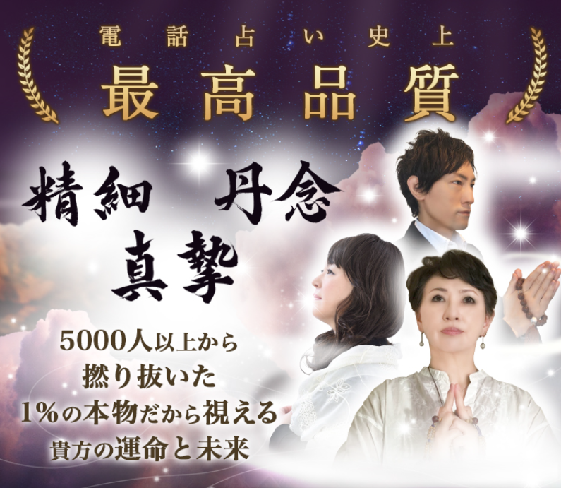 占い師の採用には高い基準を設け採用率はわずか5%と実力派揃い、「当たる」と口コミ・レビューで評判の人気占い師も数多く在籍しているのがポイントです。