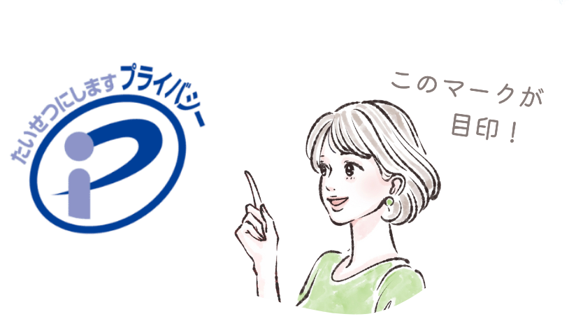 Pマーク…第三者機関により、「個人情報を適切に管理している」と評価された事業者のみが使用できるマーク