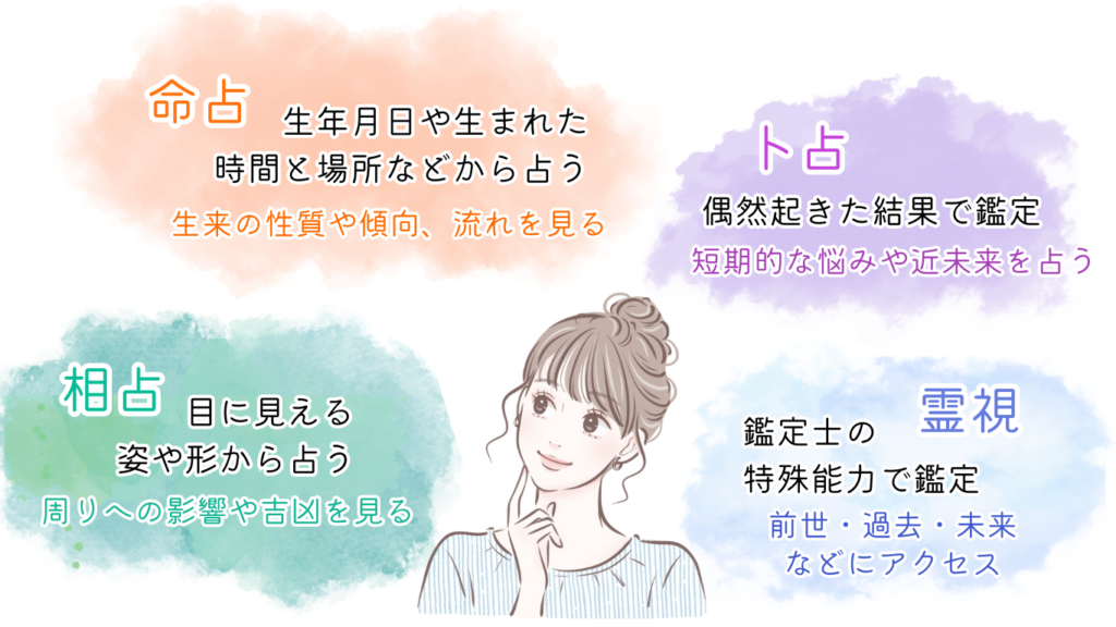 相談内容ごとの適した占術は、【お悩み別】当たる占術ガイドの章を参考にしてください。