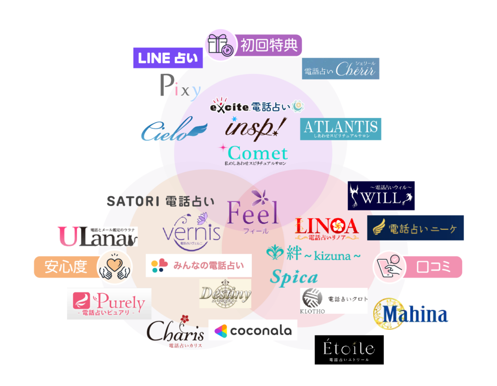 ※当記事は各公式サイトに加え、外部サイトである「ショコラ」「ウラコミ」「レディコミ」「占いチャンネル」などの電話占い口コミサイトの生の声を参考に作成しています。