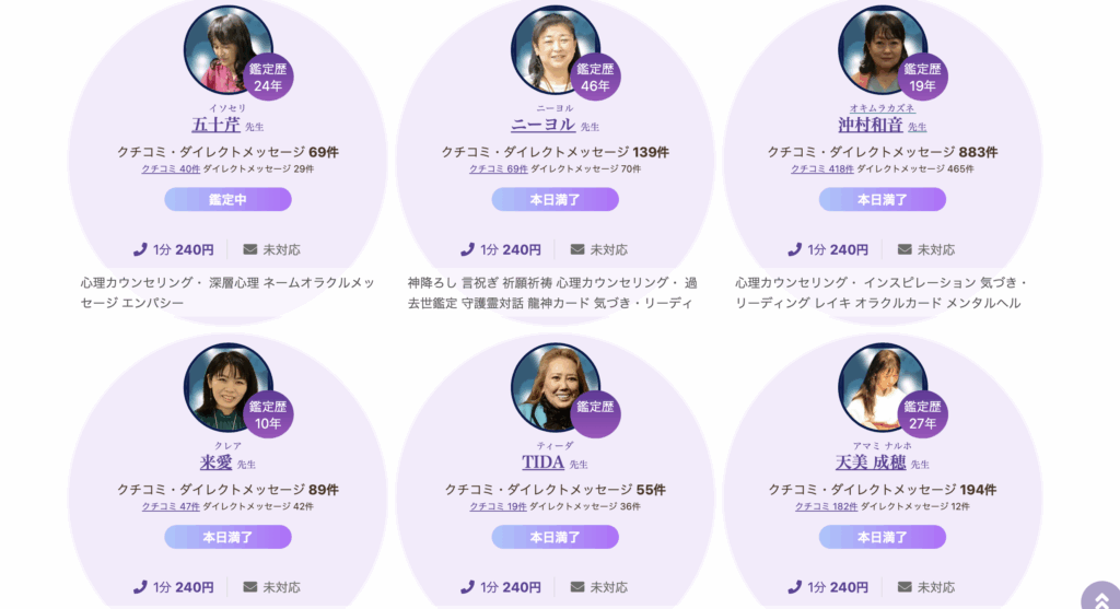 順番待ちが発生すると、すぐに鑑定を始められないこともあり、短時間だけの利用や急な相談には不向きな場合があります。