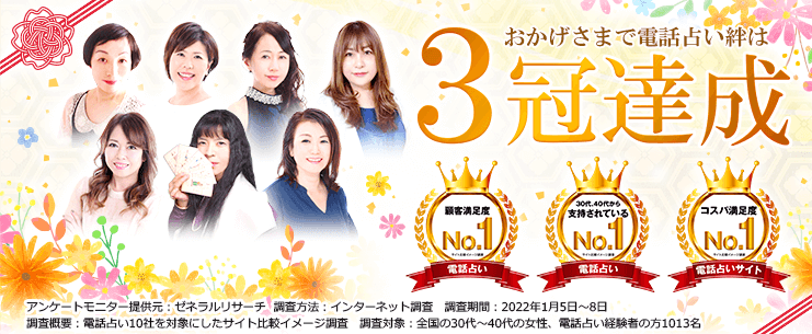 ![]() 電話占い絆 | 3,000円分 無料 | 1分209円〜 | 通話料無料 | 9:00〜翌2:00 | リーズナブルな本格鑑定 創業8年以上 |