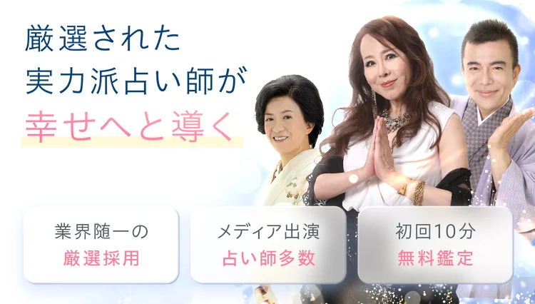 | 180円~600円 ※通話料金無料 | 4,000円分 無料 | 運営歴20年以上 全国の占い館と提携 Pマーク取得 |