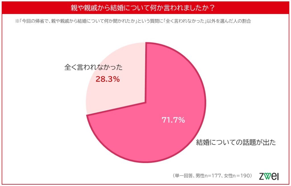 今回の帰省で親や親戚から結婚について話題をされた人は71.7%