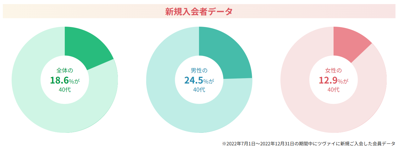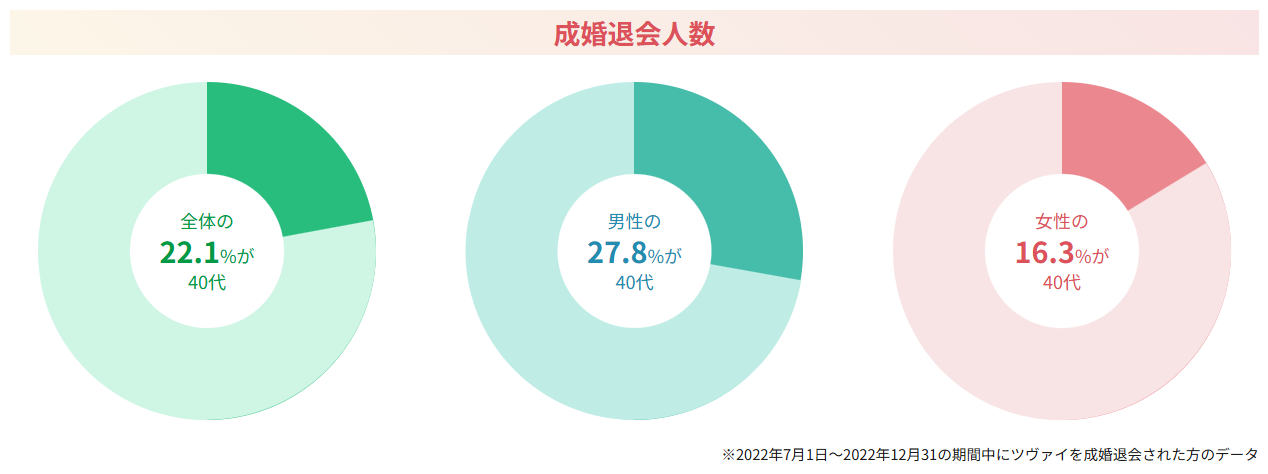 加えて、ツヴァイでの成婚退会人数のうち、全体の22.1%が40代の会員という結果も出ています。