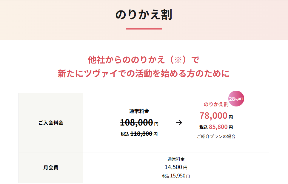 「一度、別の相談所に入会したんだけどうまくいかなかった…」という方にもおすすめなのが、ツヴァイののりかえ割。