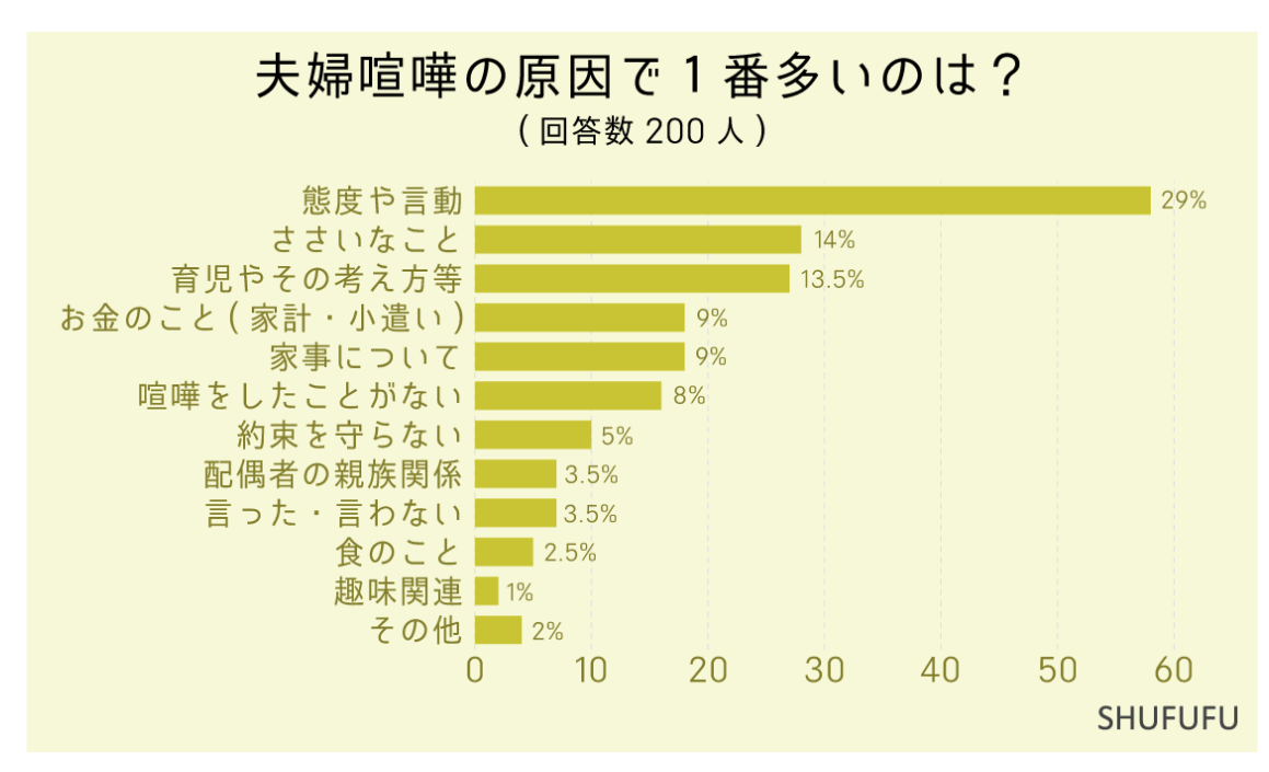 SHUFUFUが行った調査によると、夫婦喧嘩の原因の4位に、お金に関することがランクインしています。