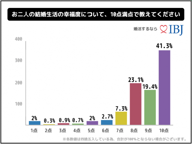 結婚相談所で結婚した夫婦の8割以上が、結婚後の幸福度を10点満点中8点以上と回答。