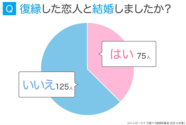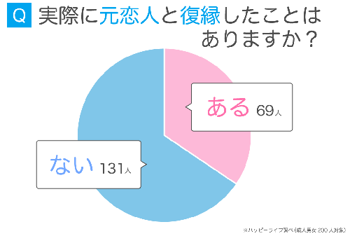 まず、調査によると、元恋人と復縁した経験がある人は約35%という結果に。