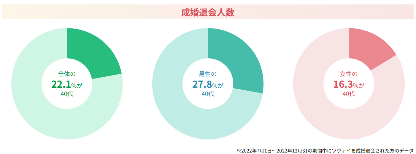 さらに、成婚退会者のうち22.1%が40代という数字も心強いものです。