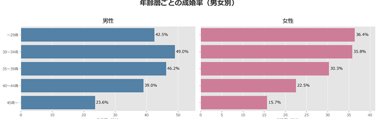 前述の通り、年齢が上がるほど成婚率は下がり、競争環境もシビアになりやすいのが現実です。