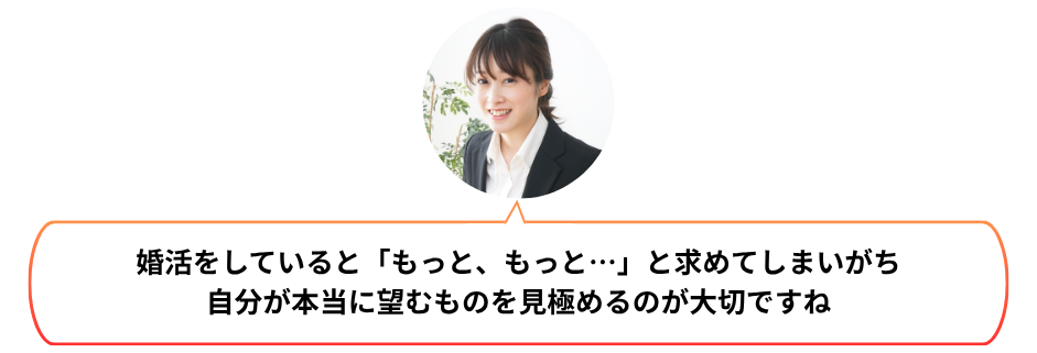 婚活を続けていると、良くも悪くも選択肢が豊富にある状態になりやすく、知らないうちに理想が少しずつ上がってしまうことがあります。