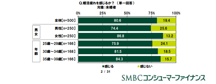 男性の約4人に3人が婚活疲れを経験している結果となりました。
