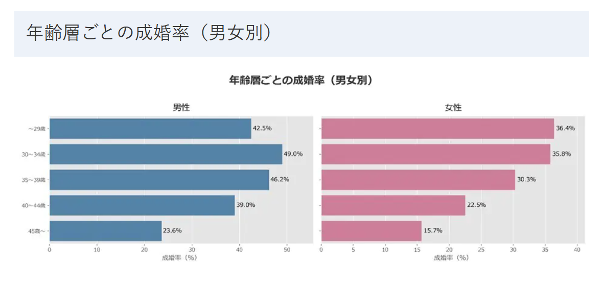 成婚率は、サービス全体の質だけでなく、年代ごとの婚活の難しさや活動のしやすさを映している側面もあるんです。