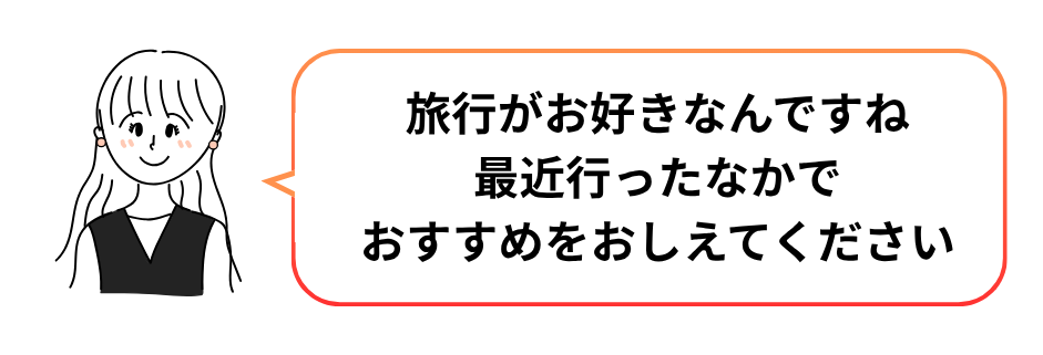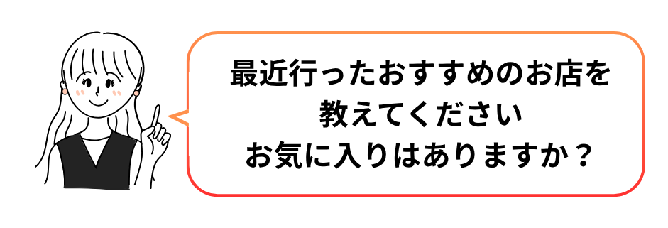 「最近行ったおすすめのお店は?」と聞くだけで、食べ物や雰囲気の話に広がります。
