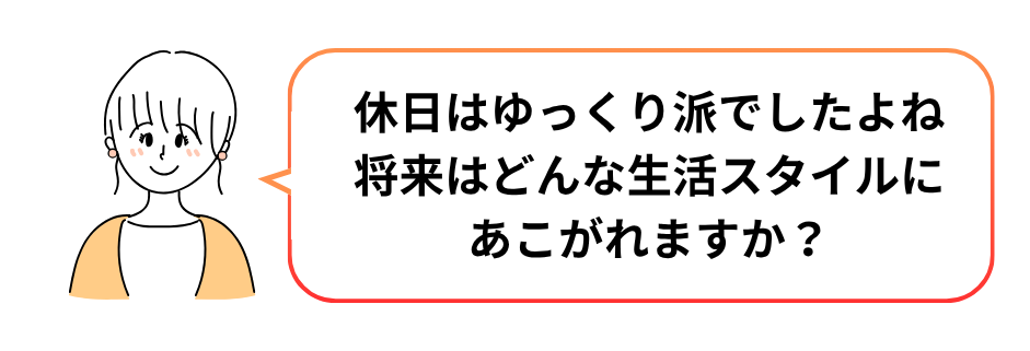 たとえば「休日はどんな過ごし方が好き?」のように、相手が自然に話せるものが◎。