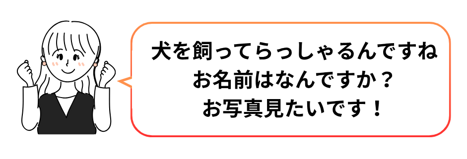 ペットの話は、ほっこり感が出て距離が縮まりやすいテーマ。