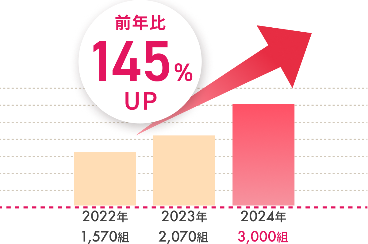 実際に、こうした価値観を重視したマッチングは成果にも表れており、ツヴァイの成婚者数は2022年の1,570組から2024年には3,000組へと増加。