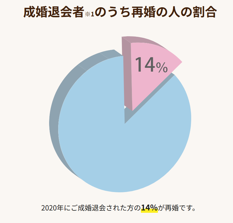 成婚退会された人のうち、なんと14%が再婚者を占めています。