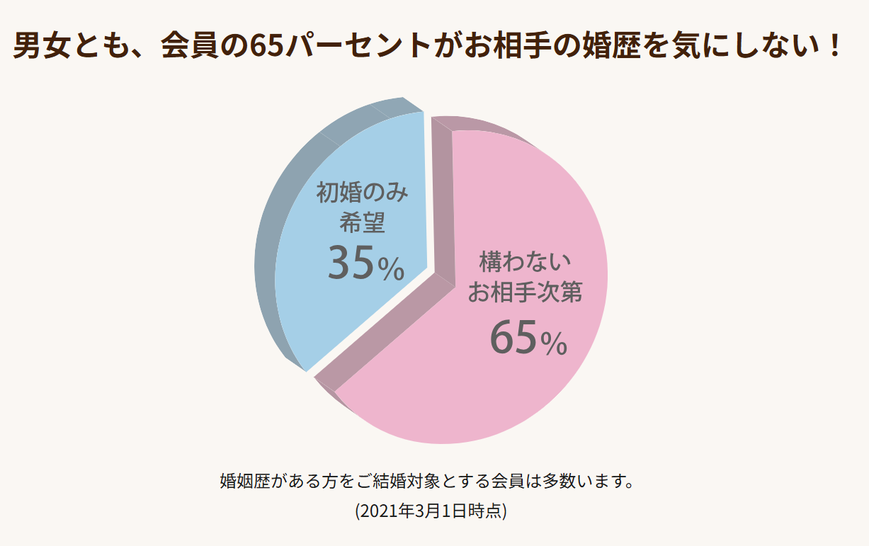 男女とも、会員の65%がお相手の婚歴を気にしない