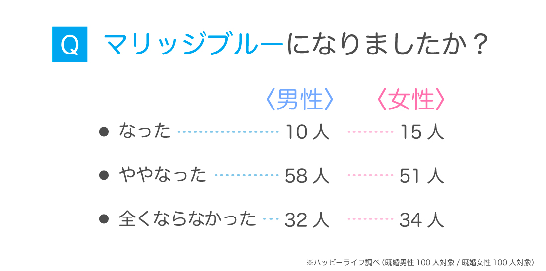では、実際にどのくらいの人がマリッジブルーを経験しているのでしょうか。