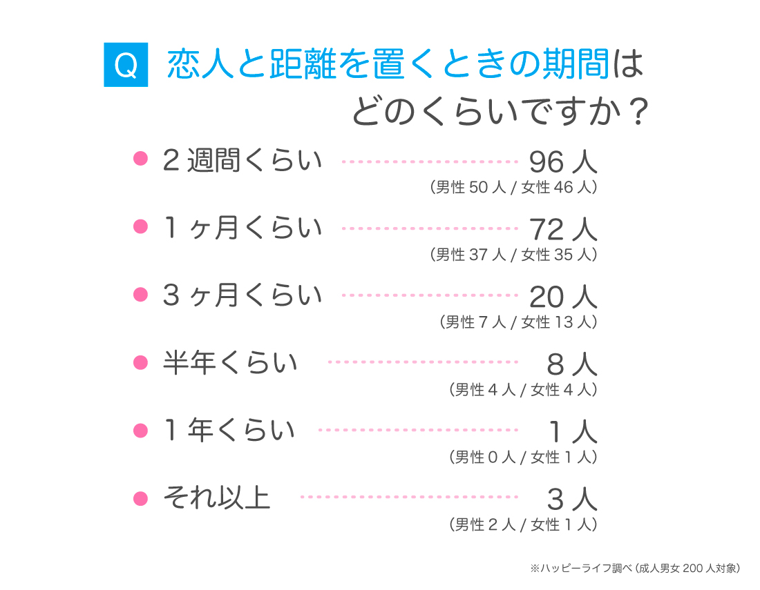 引用元:距離を置く期間は平均「1ヶ月」!期間中にやるべきこと・やってはいけないこと