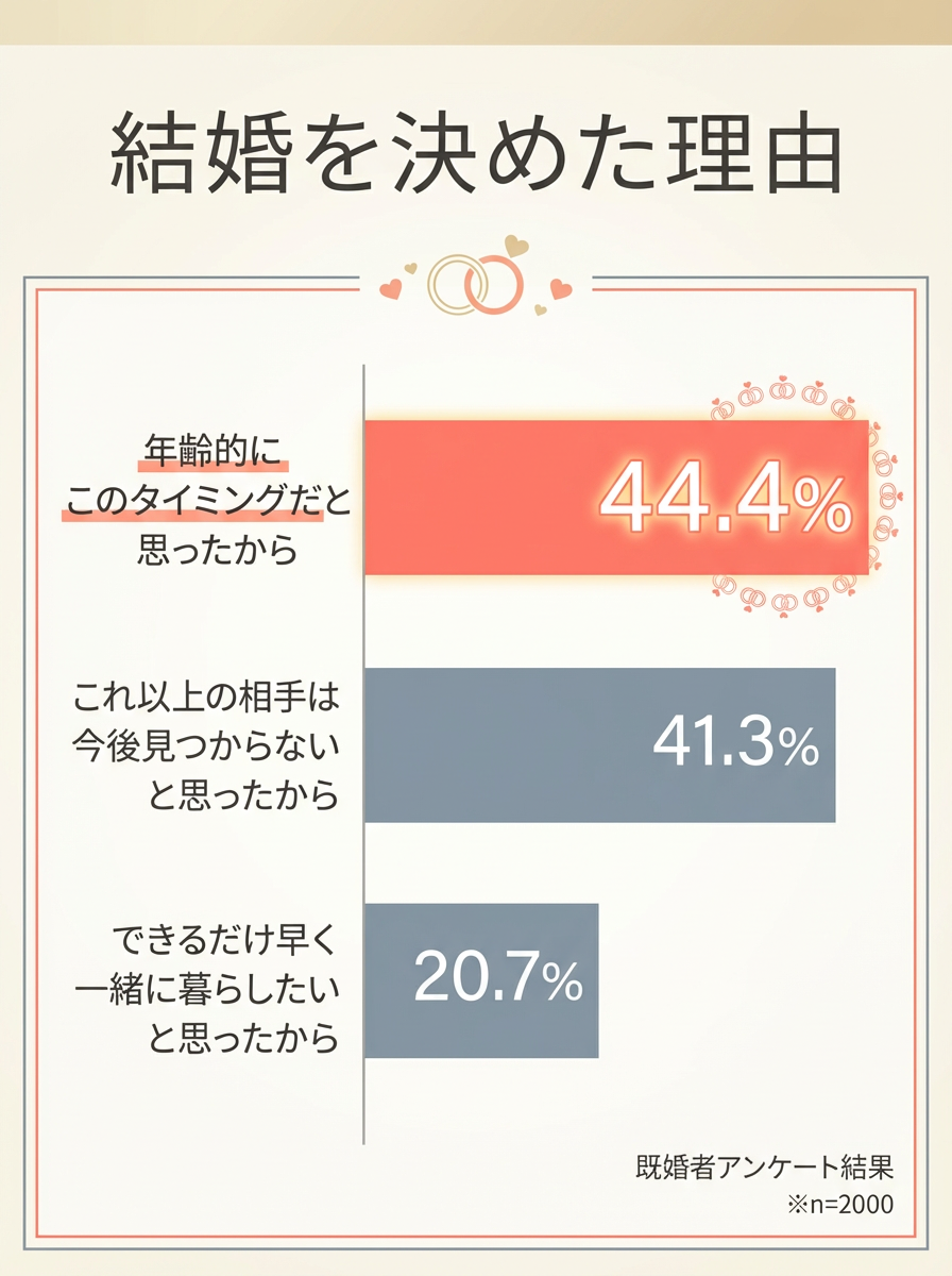 年齢や周囲の結婚報告が増えてくると、「これ以上迷っていられない」という気持ちが強くなります。