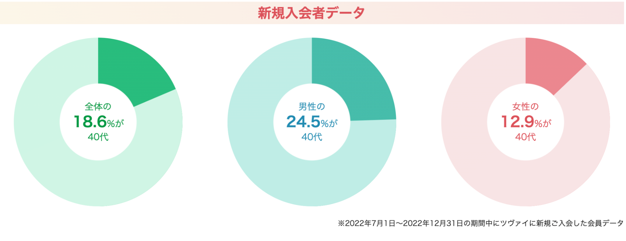 実際に、上記の新規入会者データを見ると、全体の18.6%が40代、男性では24.5%、女性でも12.9%が40代です。