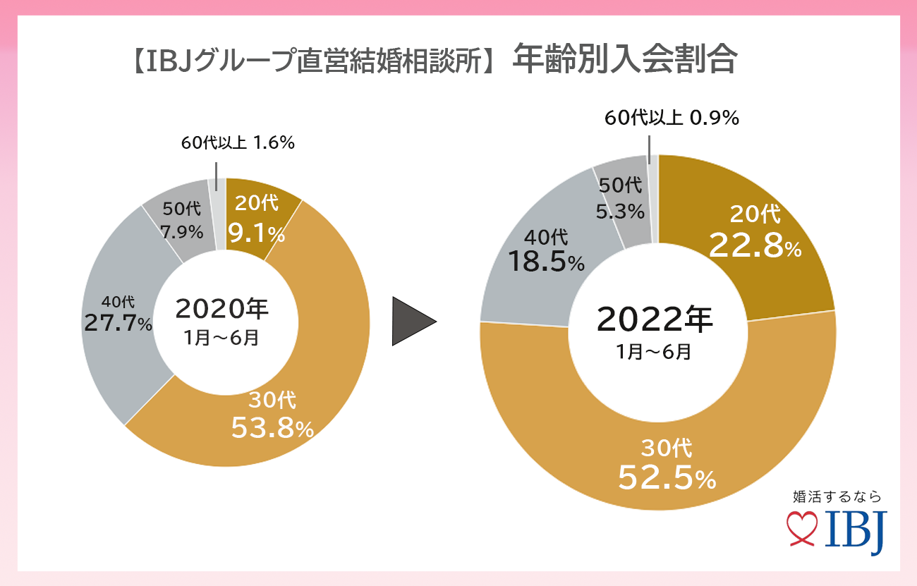 引用元:結婚相談所ネットワーク IBJ日本結婚相談所連盟|2022年上期の年齢別入会割合
