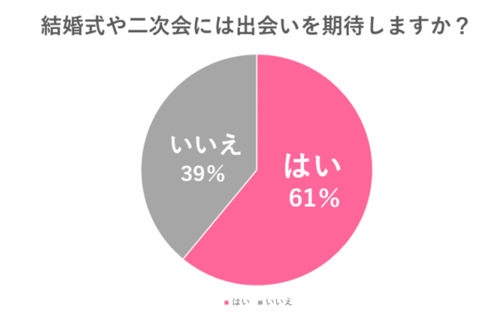 株式会社ワイズが行った調査で「結婚式や二次会に出会いを期待しますか?」という質問に対して、参加者の6割以上が「はい」と回答しています。