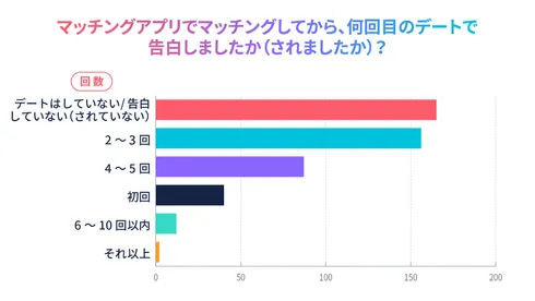 実際に、マッチングアプリに関する調査では、2〜3回目のデートで告白に至るケースが多いという結果が出ています。