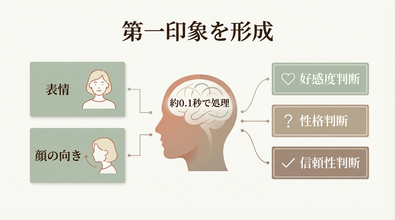 さらに日本の学術誌に掲載された研究では、わずか100ミリ秒(0.1秒)という非常に短い時間だけ顔を見ただけでも、魅力や性格に関する判断が行われていることが報告されています。