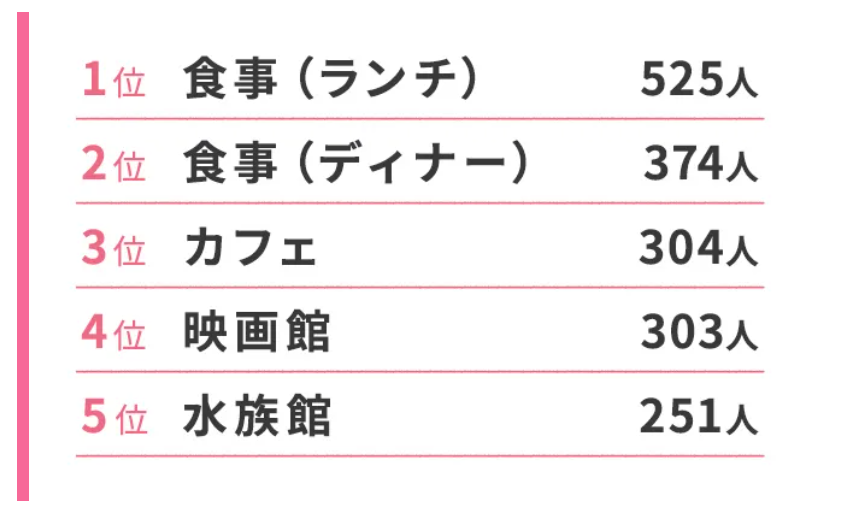 1. 1.付き合う前の初デートで行きたい場所1位は「ランチ」!